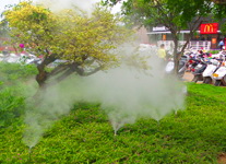 噴霧系統(tǒng)運(yùn)用的案例含噴霧消毒、人造霧景觀、噴霧除臭、除塵等。